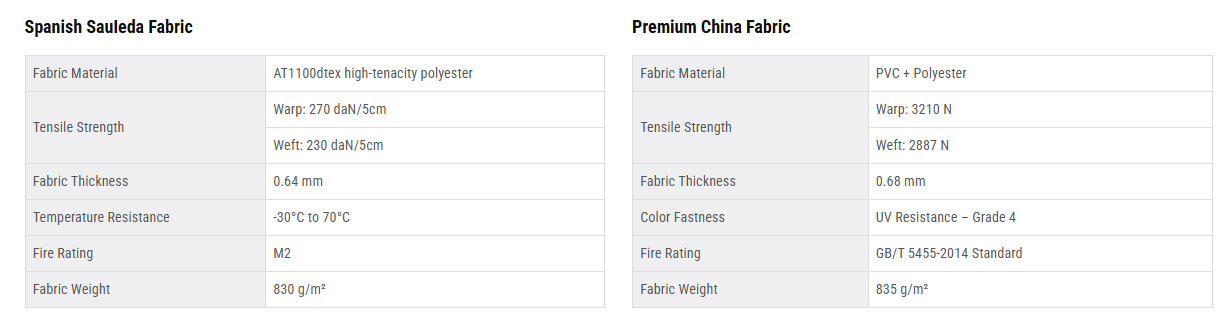 Reinforced PVC double coating, tear-proof, mildew-resistant & fire-retardant